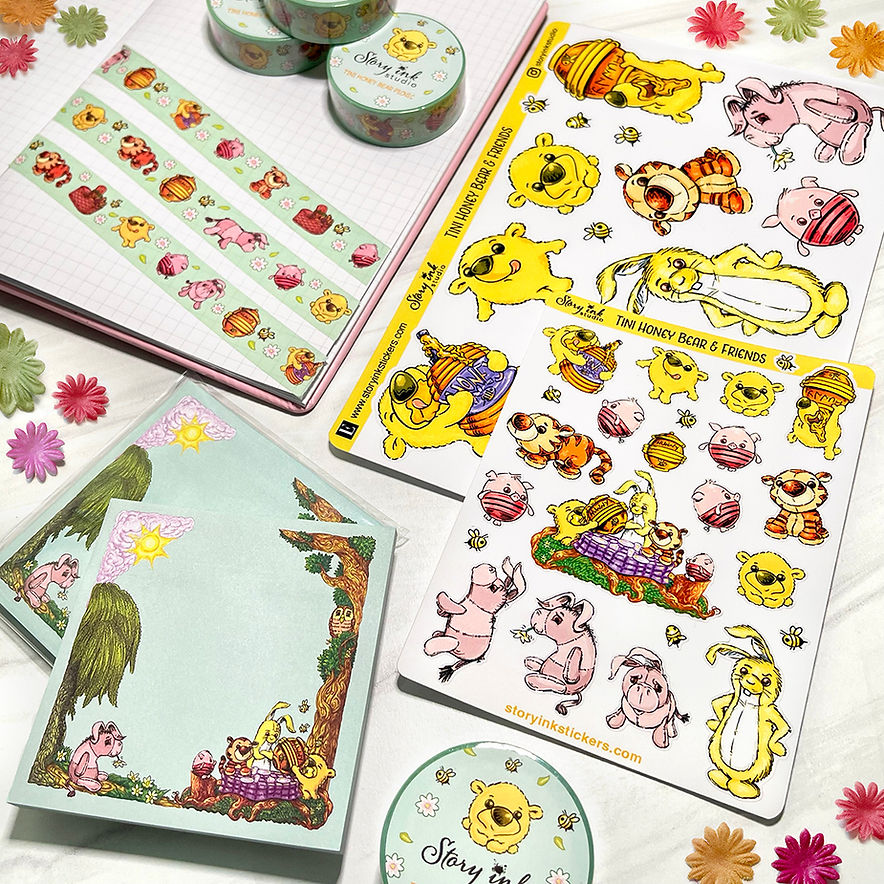 Story Ink Studio offers original unique hand drawn sticker art by the owner, Teresa and her husband Jeff. All art is exclusively for Story Ink Studio. These stickers are designed for various planners, journals, arts & crafts and calendars. The sticker kits are formatted for standard vertical 7" x 9" (Erin Condren), Hobonichi Cousin A5 and Weeks, Standard Vertical Weeks /Print Pression Weeks and journaling kits. The shop also carries a wide range of functional stickers using cute characters such as workout fitness stickers series, the Tini Character collections, Bookstore cat series (for the book & cat lovers) and much more hand drawn cute characters.